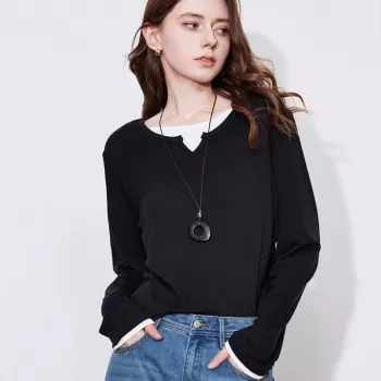 Women’s Color Blocking Splicing Fake Two Piece Slim Fit Long Sleeve T-shirt